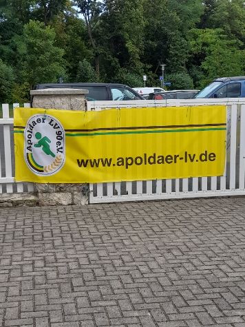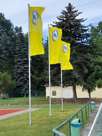Erstmals haben wir die Fahnen und Banner bei den Kreiskinder- und jugendspielen sowie der sich anschließenden Mitgliederversammlung am 17. August 2024 im Apoldaer Hans-Geupel-Stadion präsentiert. Wir danken der Sparkasse Mittelthüringen, die einen guten Teil der Kosten übernommen hat.